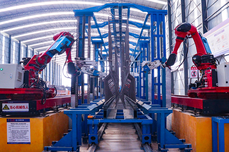 机械人协同完成钢筋下料、定位、绑扎、焊接等